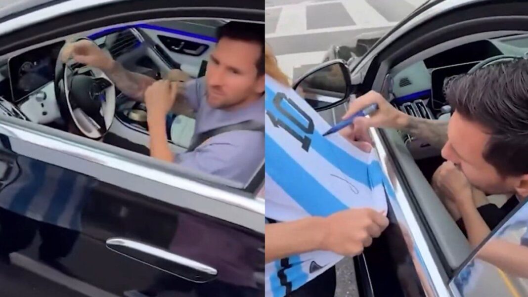 Con la mejor de las ondas, el capitán de la Selección Argentina -que viajaba solo- aprovechó el semáforo en rojo para regalarle un gran momento a dos jóvenes: los saludó y les firmó sus camisetas. Uno de ellos llevaba la de Inter Miami y la otra persona vestía la Albiceleste. ¡Crack, Leo!