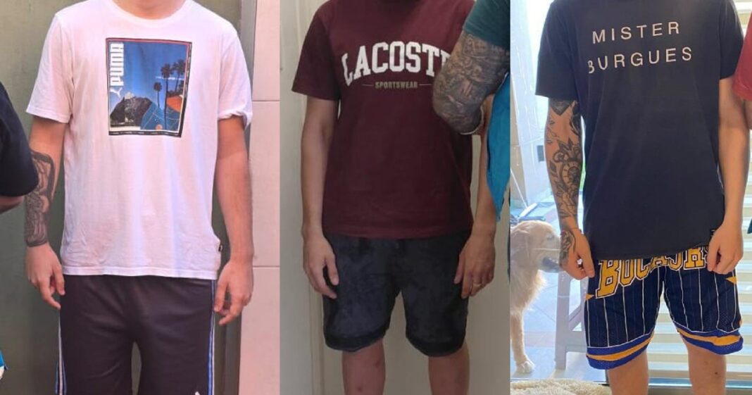 Tres de los cuatro integrantes de la banda contrabandista que fueron detenidos. Foto Policía de la Ciudad